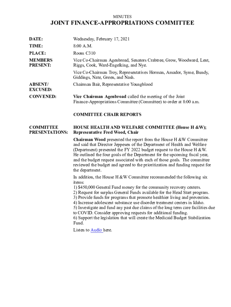 MINUTESJOINT FINANCEAPPROPRIATIONS COMMITTEE