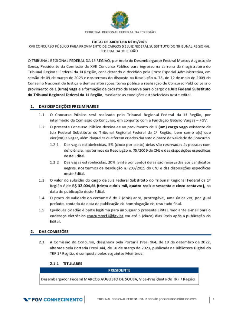 XVII CONCURS PBL ICO PARA PROVIDENT DE CARGOS DE QUIZ FEDERAL SUBSTITUTE DO TRIBUNAL REGIONAL