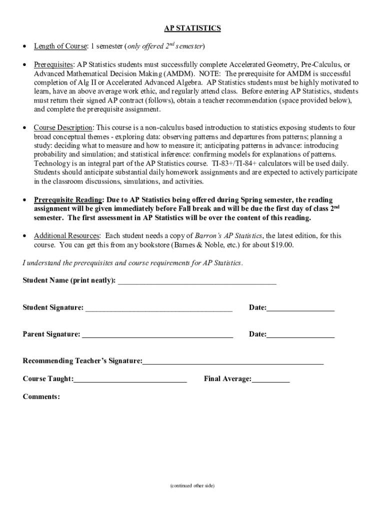 Get the free Should I take pre-calculus honors and AP statistics at the ...