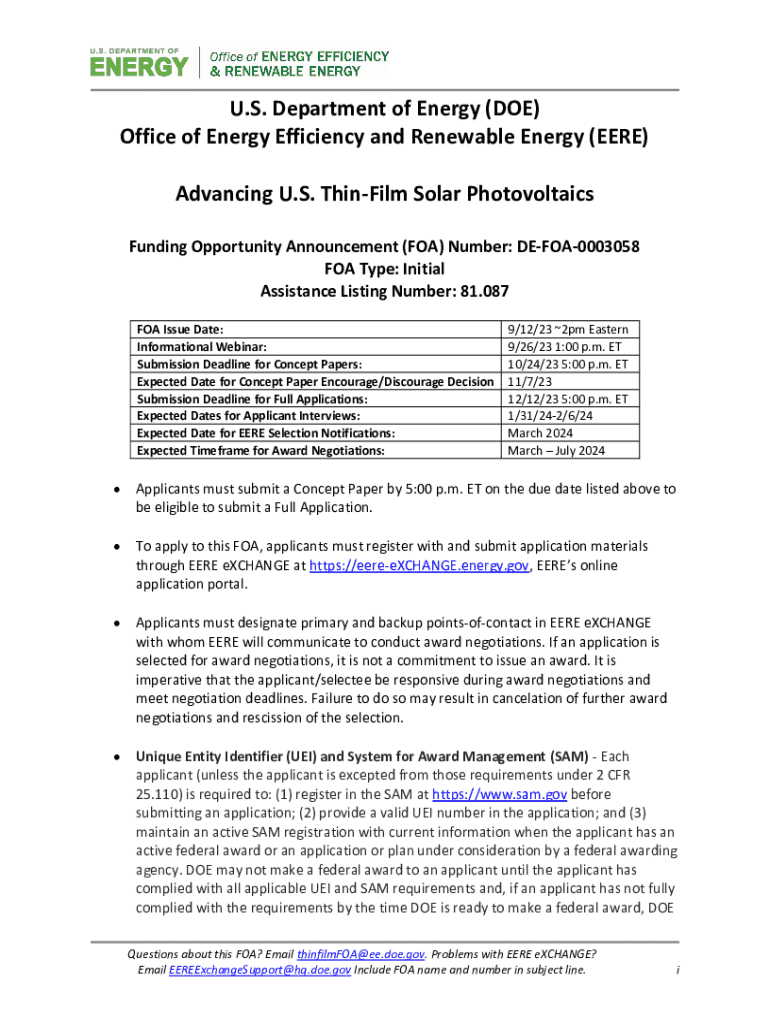 Get the free Notice of Intent FY23 Advancing U.S. Thin-Film Solar - $36M - taes utk