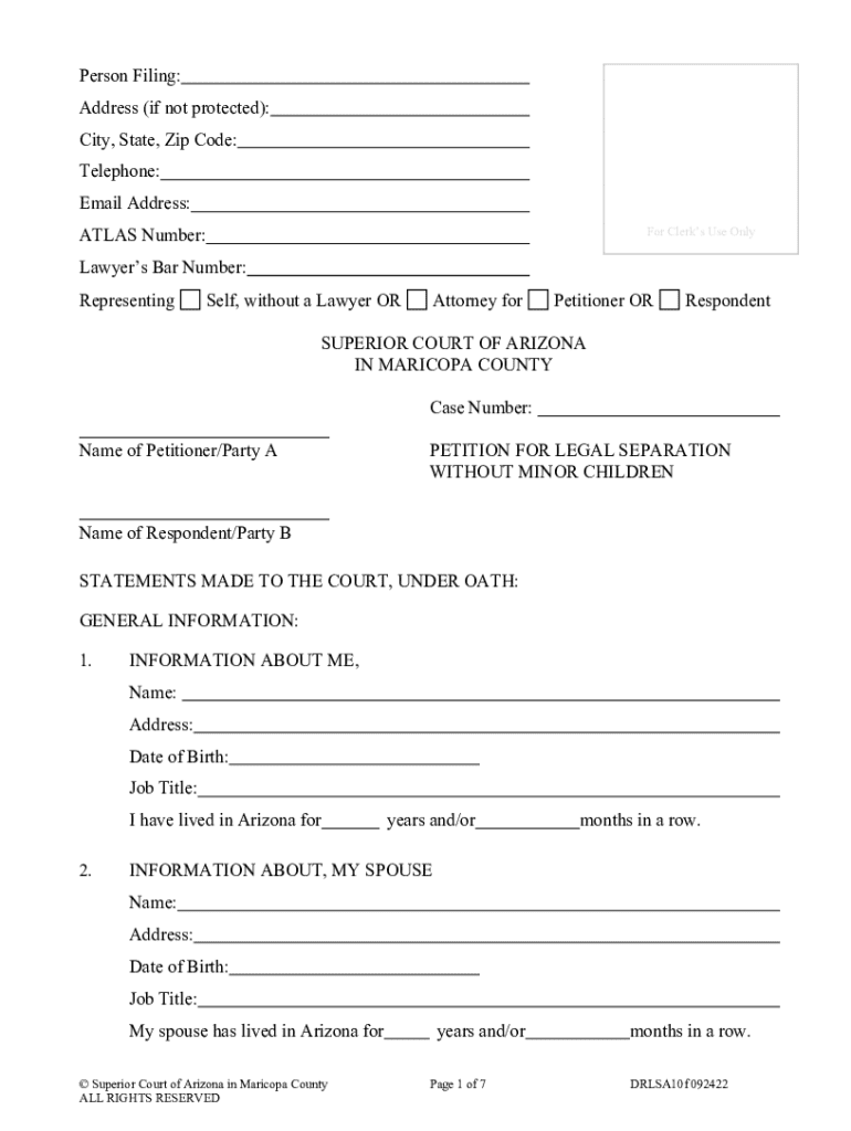 Get the free Petition for Legal Separation without Minor Children; DRLSA10f. LEGAL SEPARATION WIT...