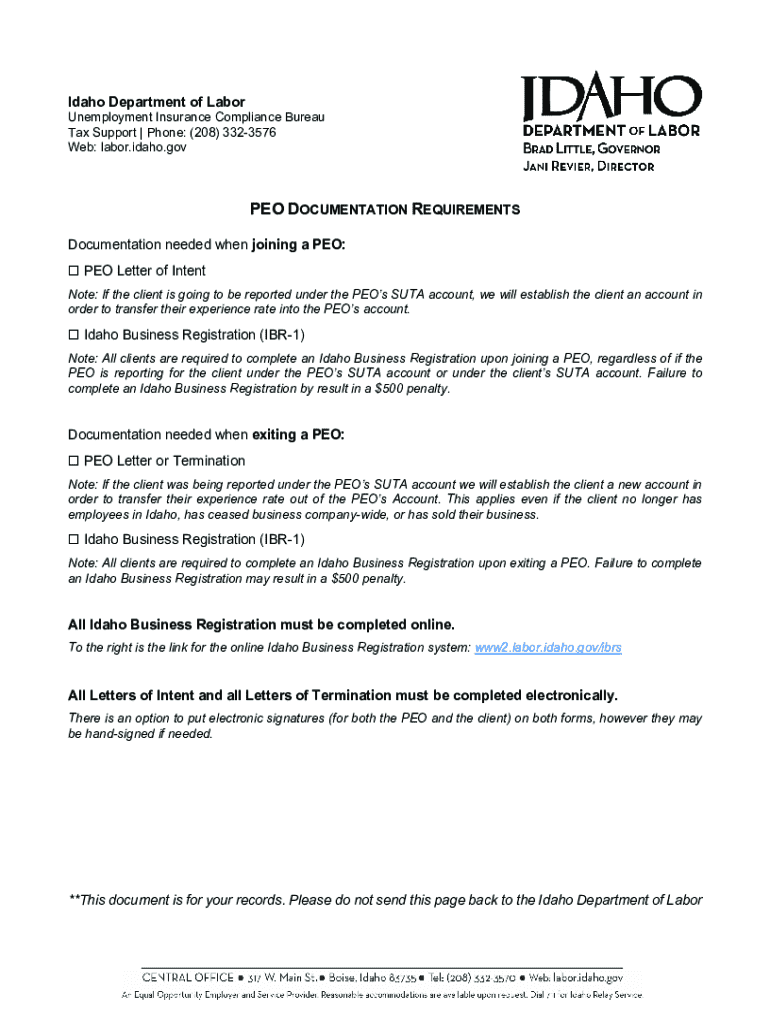 Web: labor.Idaho.gospel DOCUMENTATION REQUIREMENTS