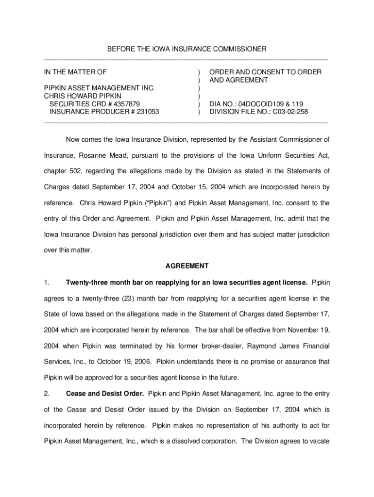 Get the free Administrative Orders & ActionsIowa Insurance Division