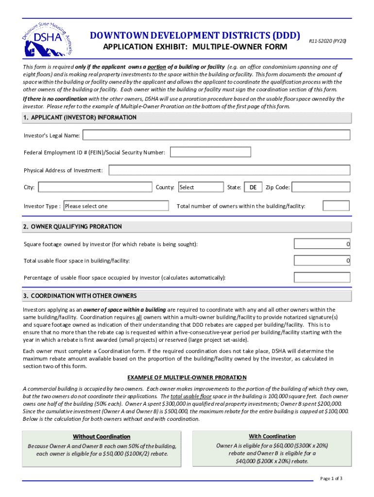 DOWNTOWN DEVELOPMENT DISTRICTS (DDD) APPLICATION EXHIBIT: MULTIPLEOWNER FORMR11S2020 (FY20)This form is required only if the applicant owns a portion of a building or facility (e.g. an office condominium