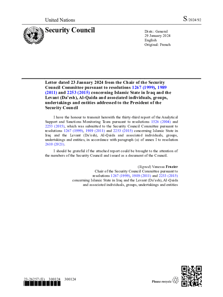 Get the free Letter dated 23 January 2024 from the Chair of the Security ...