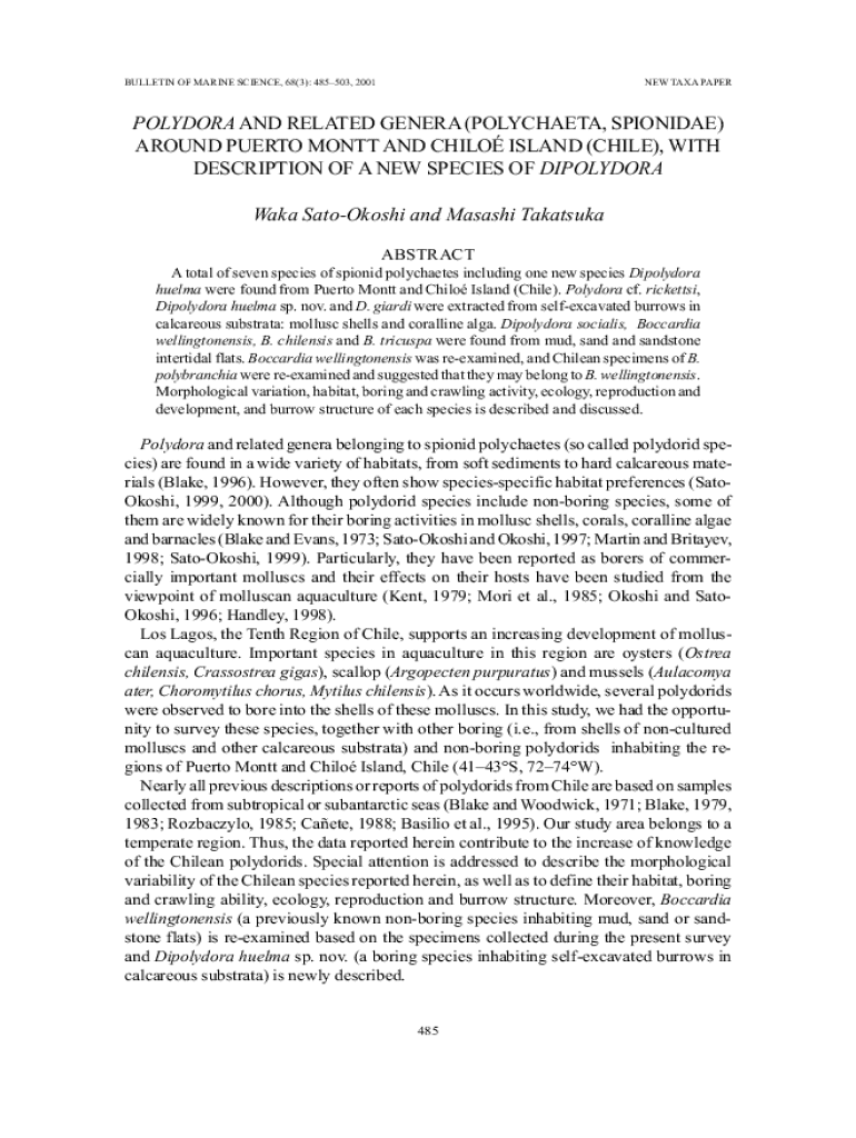 BULLETIN OF MARINE SCIENCE, 68(3): 485503, 2001NEW TAXA PAPERPOLYDORA AND RELATED GENERA (POLYCHAETA, SPINDLE)