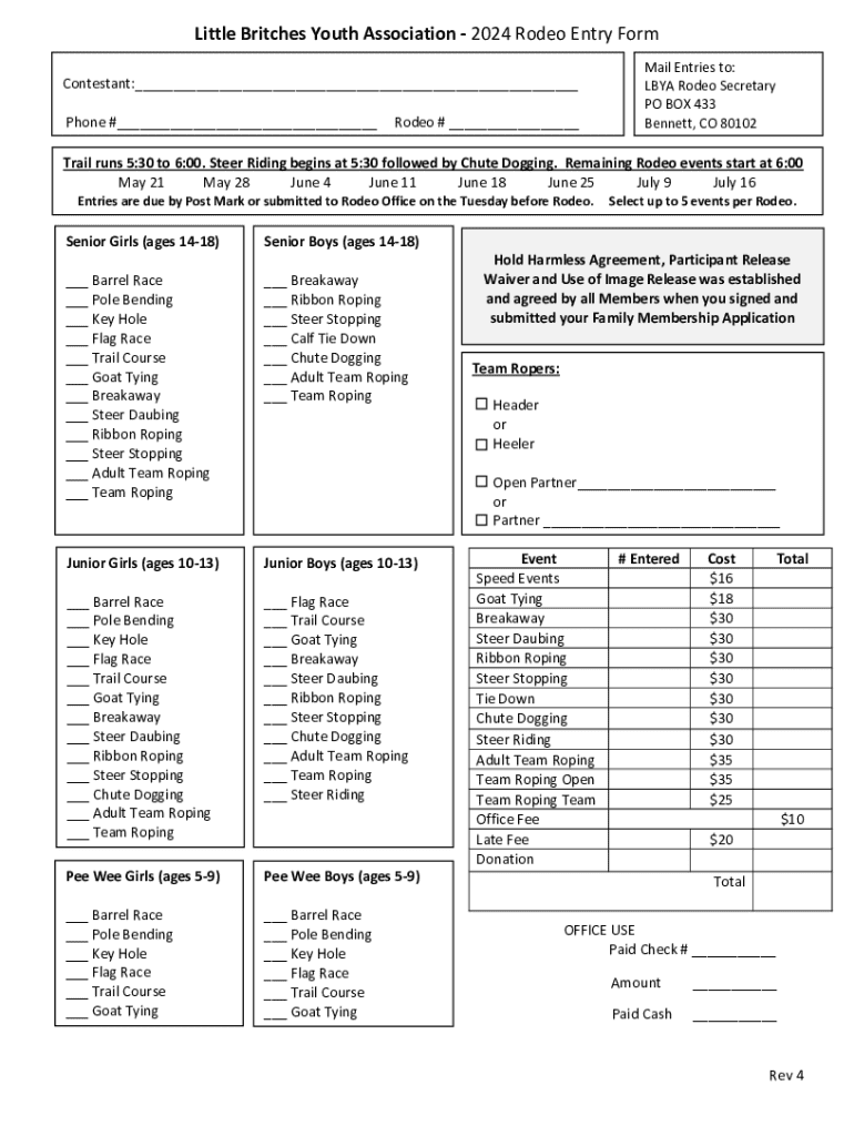 Get the free Little Britches Youth Association - 2024 Rodeo Entry Form