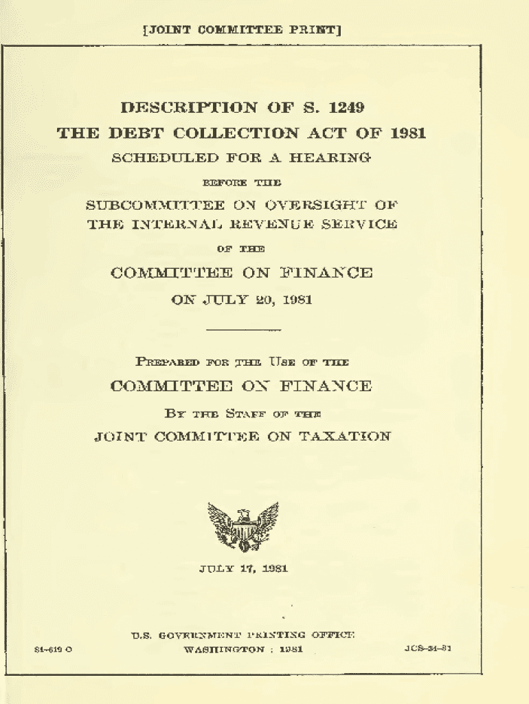 [JOINT COMMITTEE PRINT]DESCRIPTION OF S. 1249 THE DEBT COLLECTION ACT OF 1981 SCHEDULED FOR A HEARING BEFORE THESUBCOMMITTEE ON OVERSIGHT OF THE INTERNAL REVENUE SERVICE OF THECOMMITTEE ON FINANCE