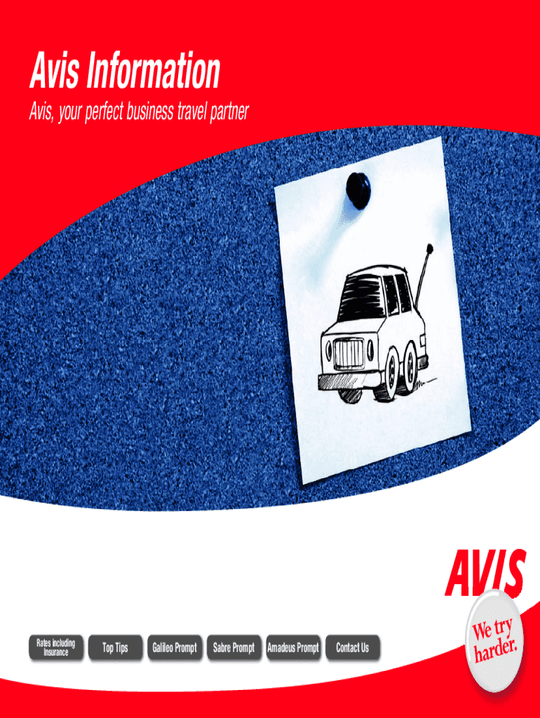 Avis InformationAvis, your perfect business travel partnerRates including InsuranceTop TipsGalileo PromptSabre PromptAmadeus PromptContact UsAvis UK Insurance rates Terms & Conditions Minimum age