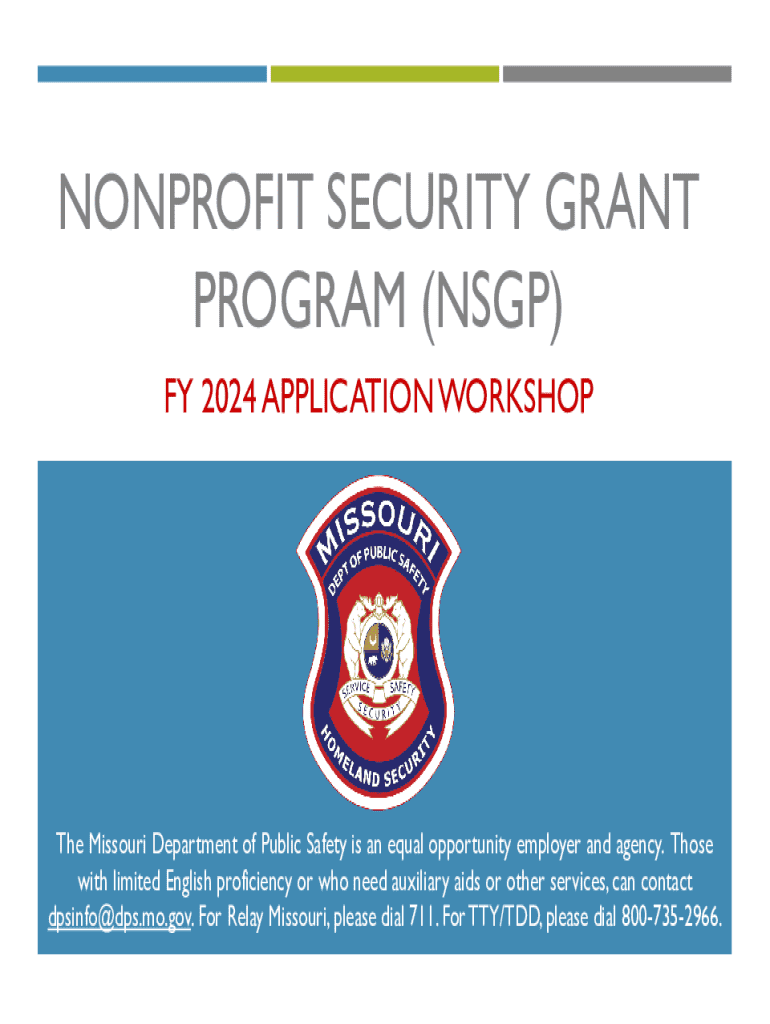 FY 2024 APPLICATION Workshop Missouri Department of Public Safety is an equal opportunity employer and agency. Those