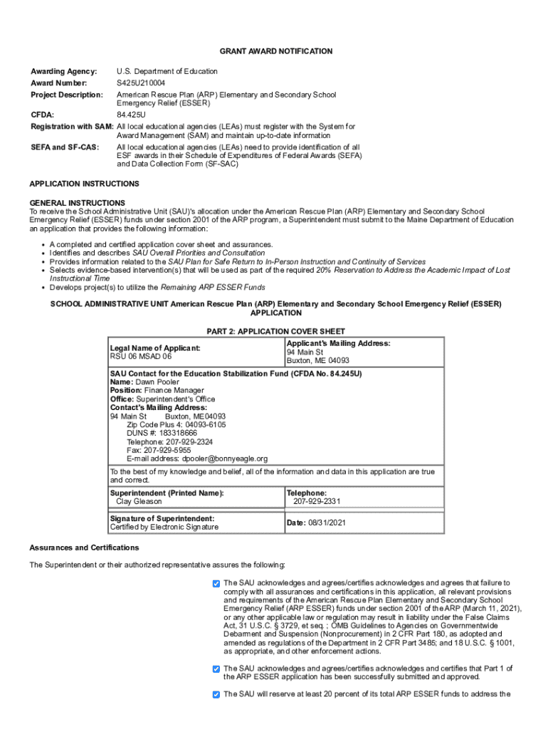 Awarding Agency:U.S. Department of EducationAward Number:S425U210004Project Description:American Rescue Plan (ARP) Elementary and Secondary School