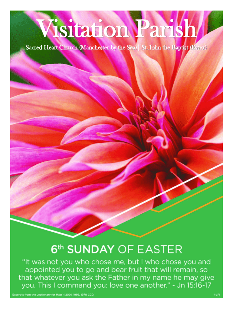 Sacred Heart Church (Manchester by the Sea)| St. John the Baptist (Essex)Sixth Sunday of Easter May 5, 2024Visitation Parish StaffLiturgy Schedule Rev. Paul Flavia, Pastor