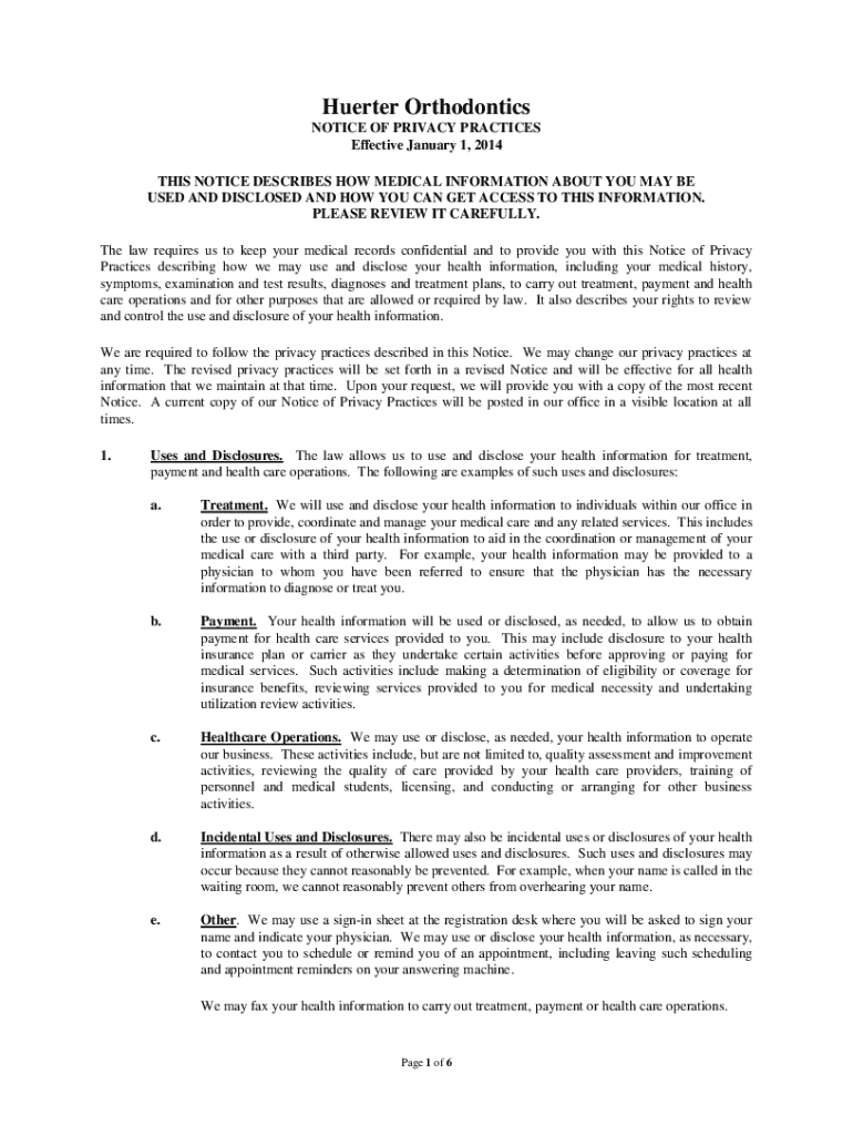 Get the free Notice of Privacy Practices - Huerter Orthodontics