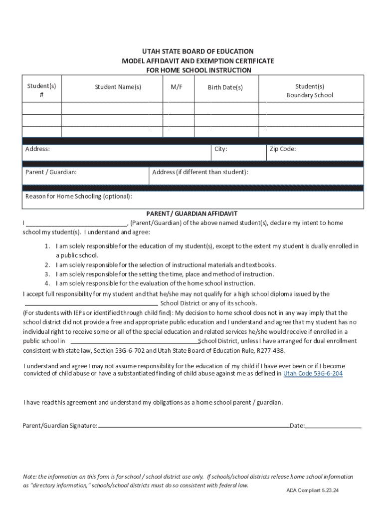 How to fill out homeschool affidavits in utah?