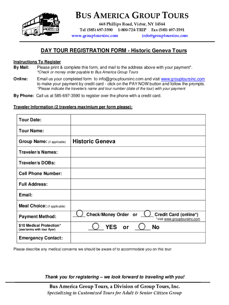 info@grouptoursinc.comDAY TOUR REGISTRATION FORM Historic Geneva Tours