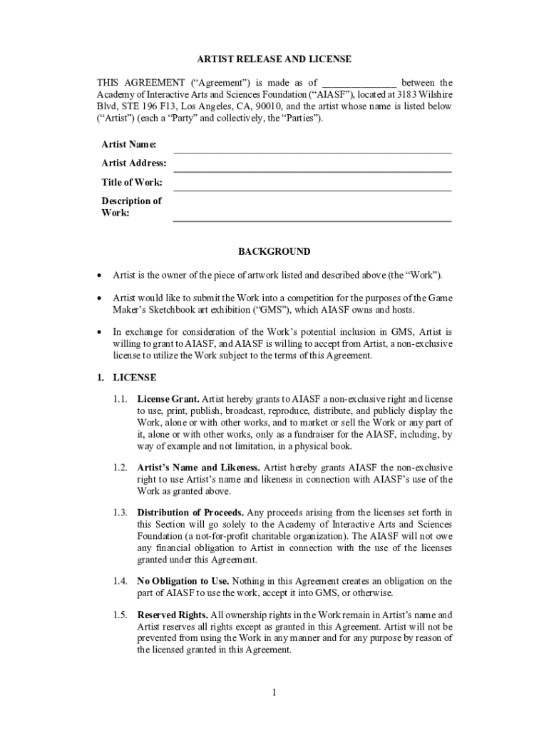 ARTIST RELEASE AND LICENSE