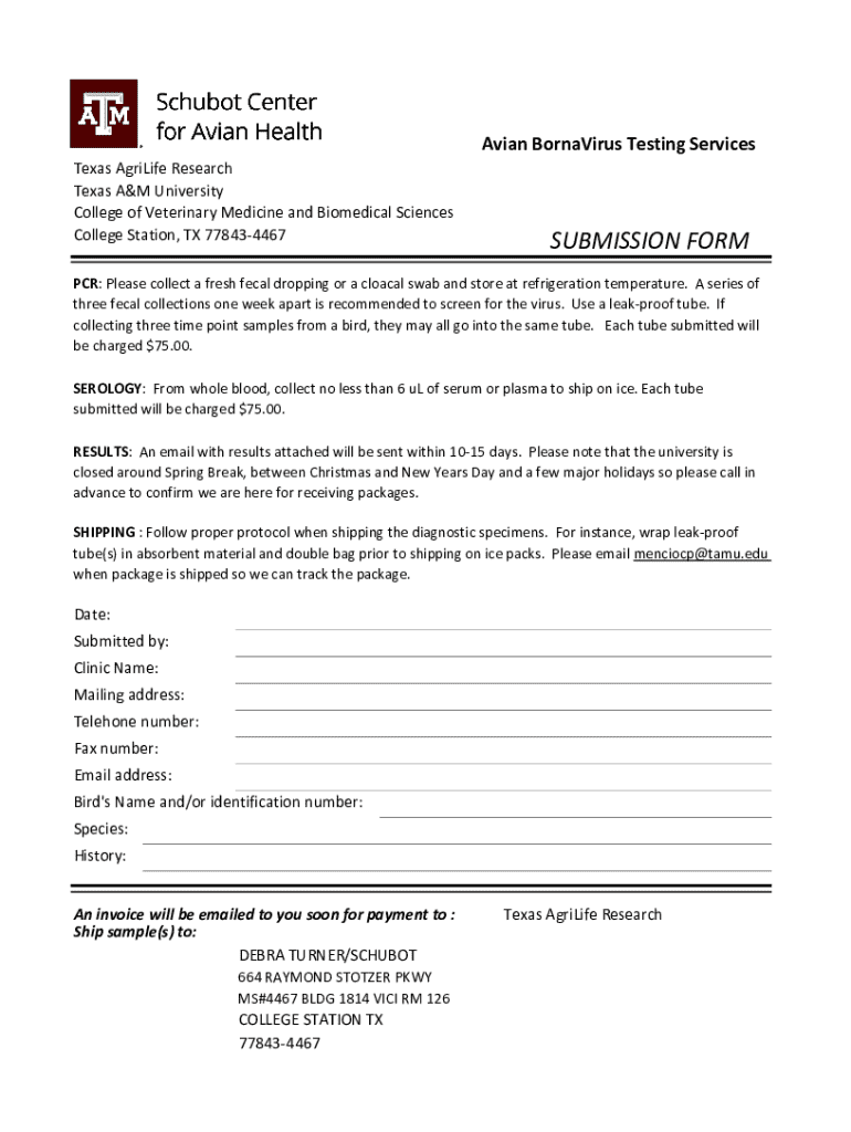 Get the free Avian Bornavirus (PCR) Referral - vetmed tamu