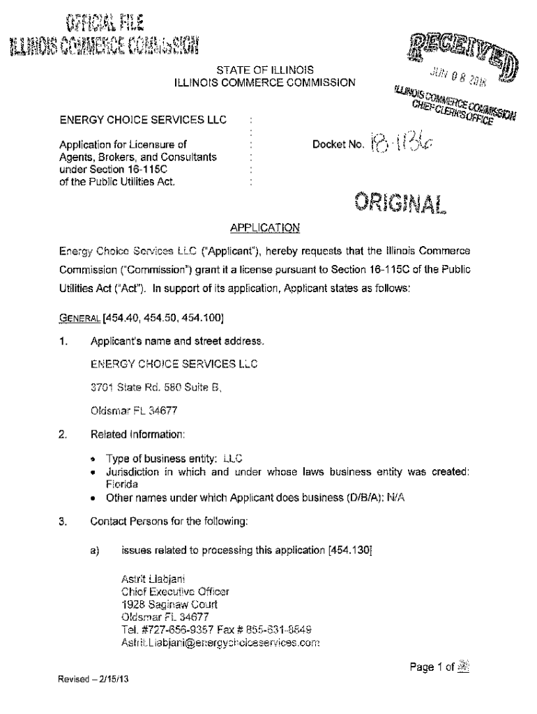 STATE OF ILLINOIS COMMERCE COMMISSIONENERGY CHOICE SERVICES LLC