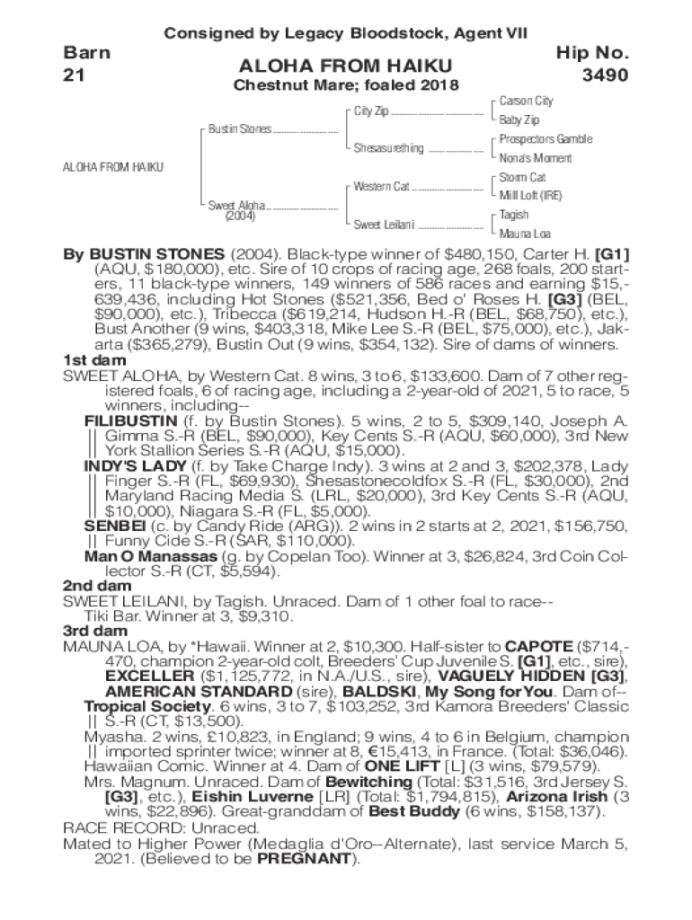 21Consigned by Legacy Bloodstock, Agent ALOHA FROM HAIKU