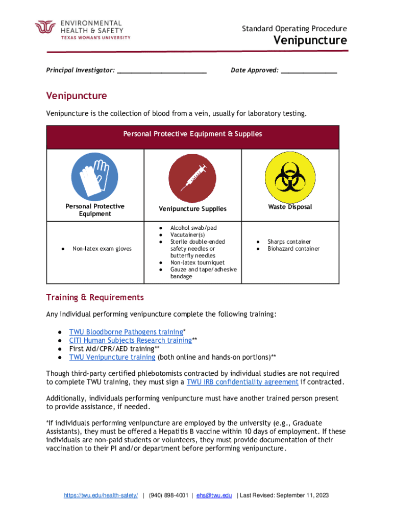 Principal Investigator: ___Date Approved: ___Venipuncture is the collection of blood from a vein, usually for laboratory testing.