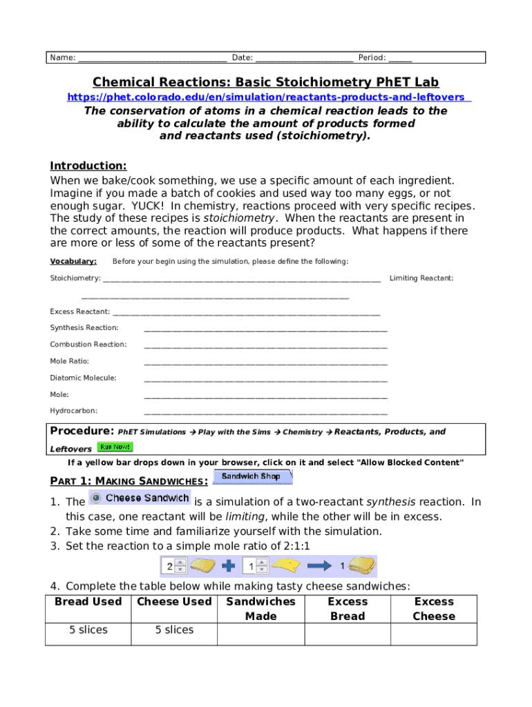 Name: Basic Stoichiometry PhET Lab Let's make some ... template instructions