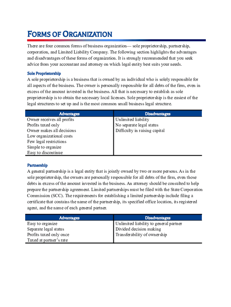 FORMS OF ORGANIZATION