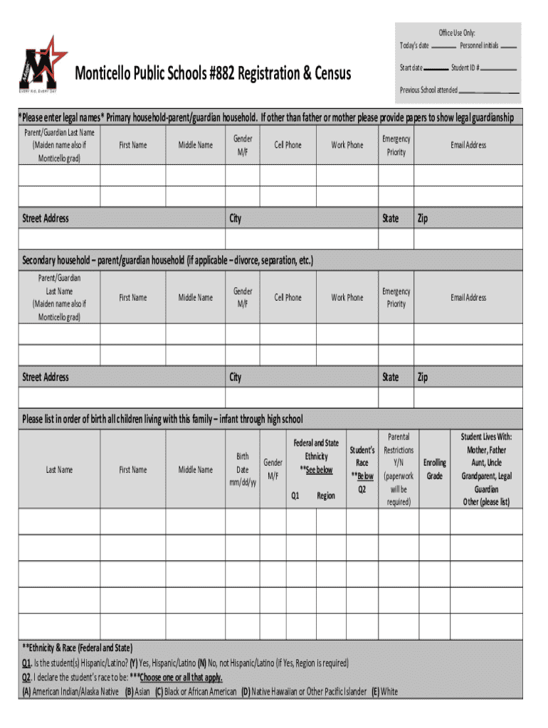 Today's date Monticello Public Schools #882 Registration & CensusOffice Use Only: