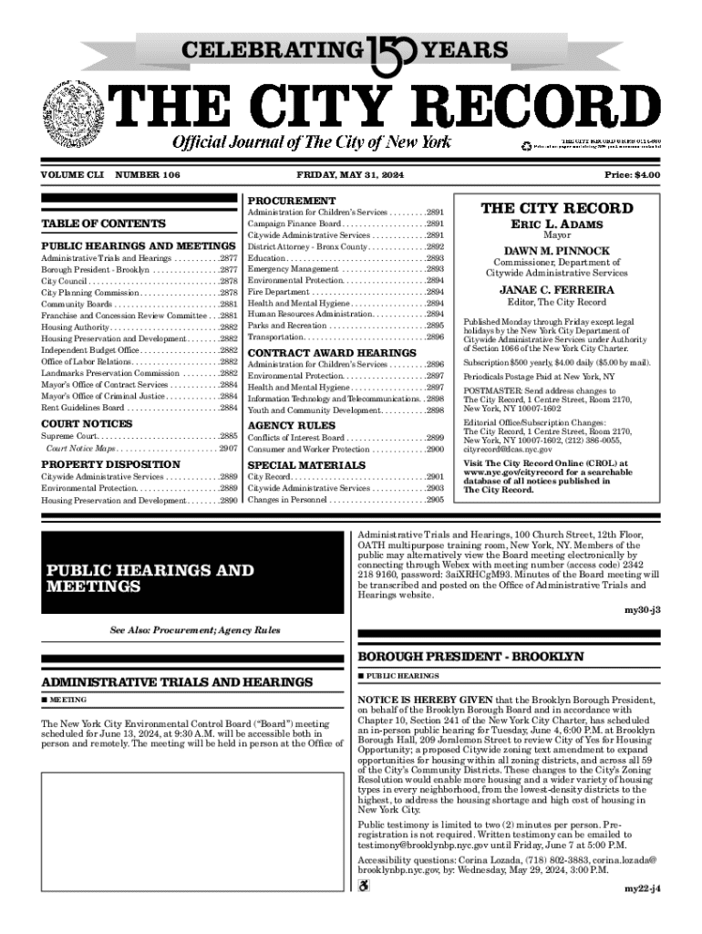 2877CELEBRATINGVOLUME CLIMBER 106YEARSFRIDAY, MAY 31, 2024, PROCUREMENTTABLE OF CONTENTS
