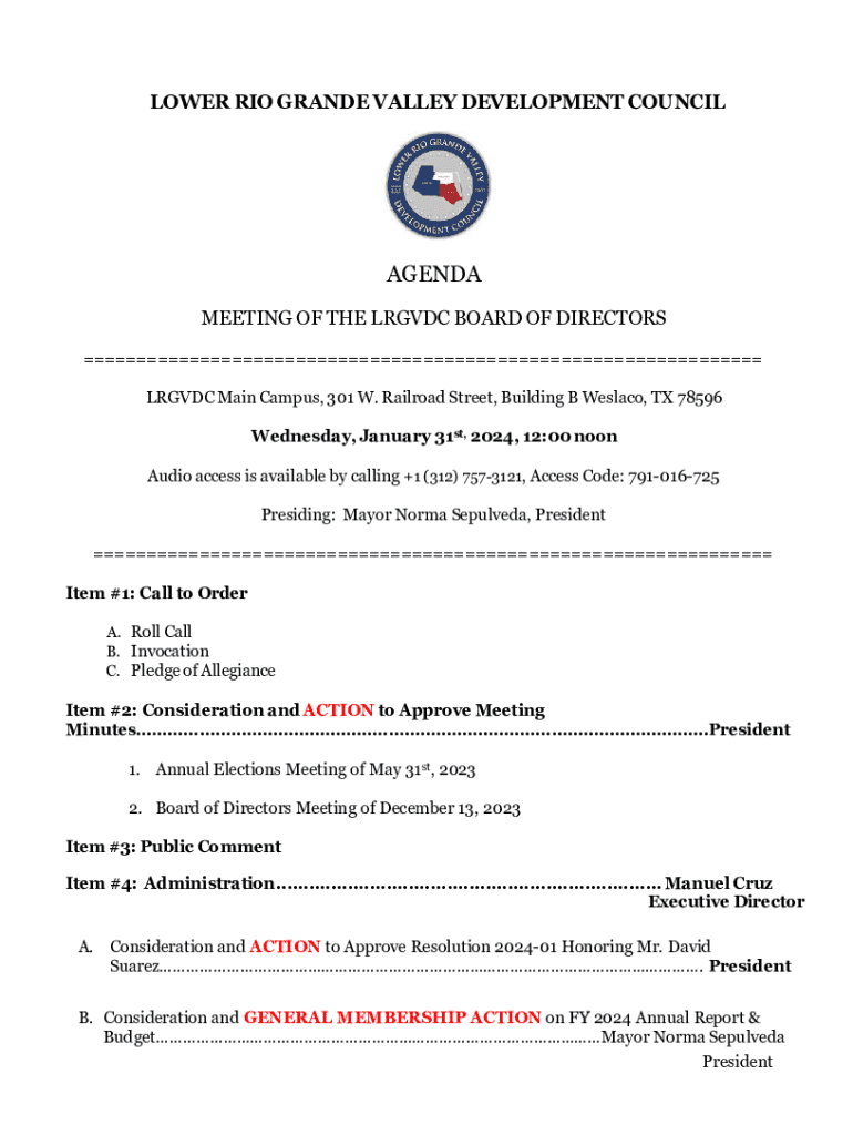 LOWER RIO GRANDE VALLEY DEVELOPMENT COUNCILAGENDA
