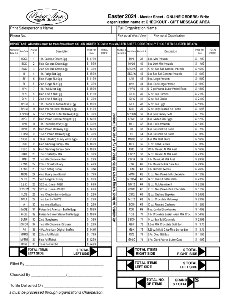 Easter 2024 Master Sheet ONLINE ORDERS: Write