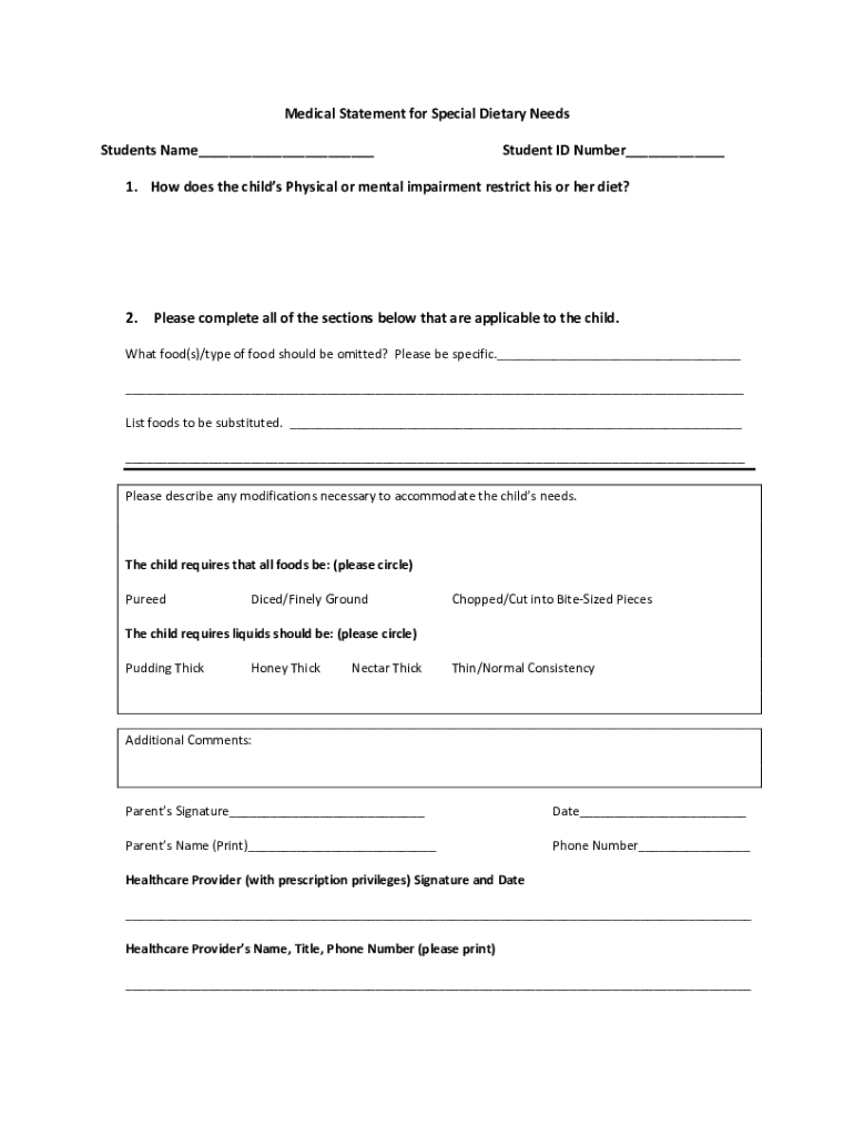 Students Name___Student ID Number___1. How does the children Physical or mental impairment restrict his or her diet?2. Please complete all the sections