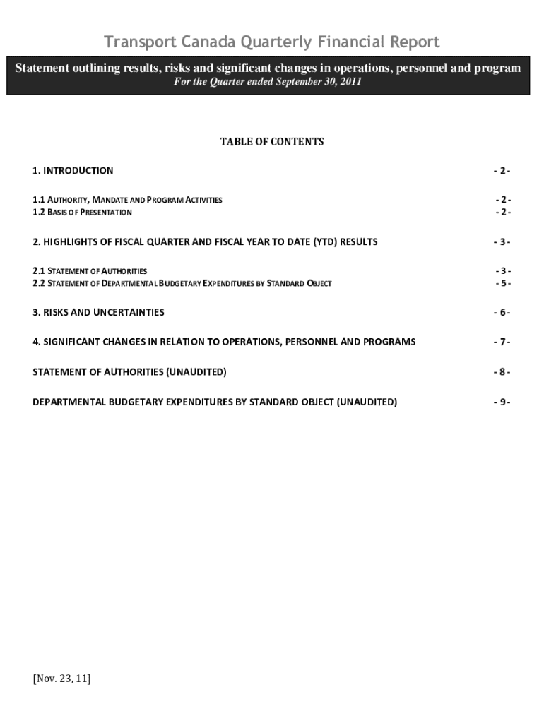 Transport Canada Quarterly Financial Report