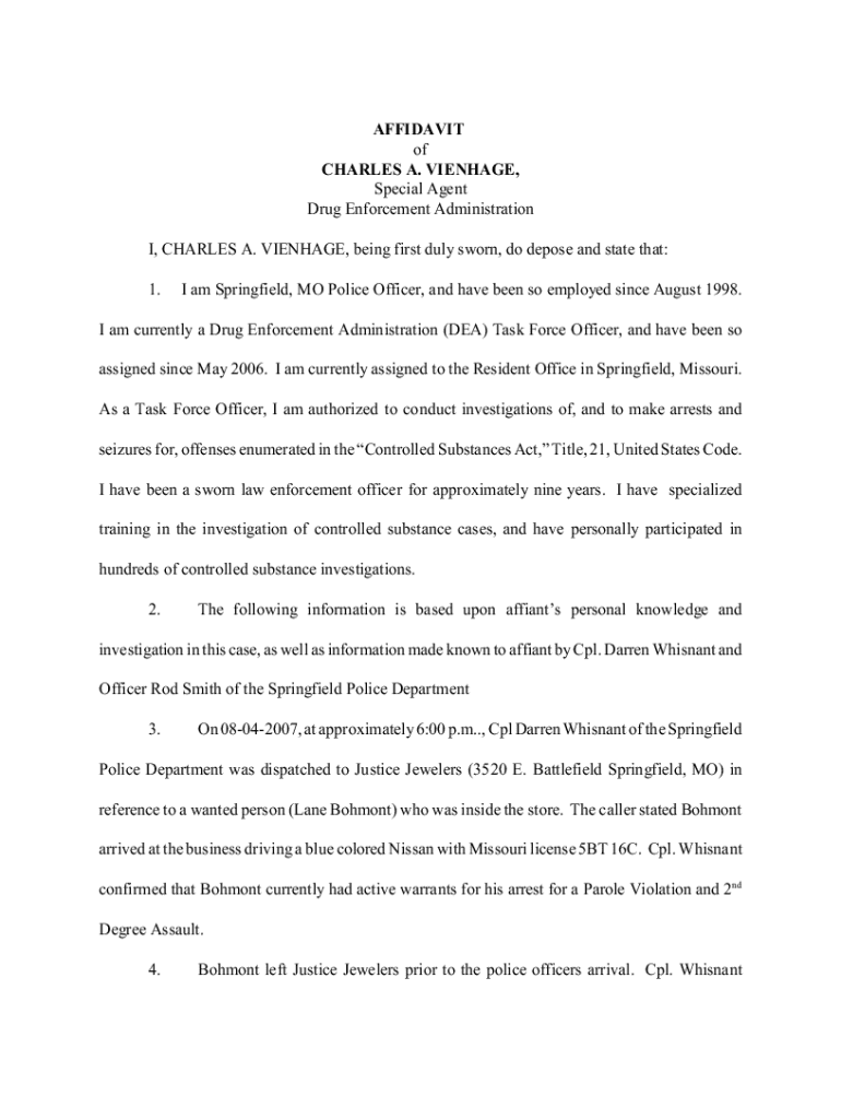 Get the free AFFIDAVIT of CHARLES A. VIENHAGE, Special Agent Drug ...