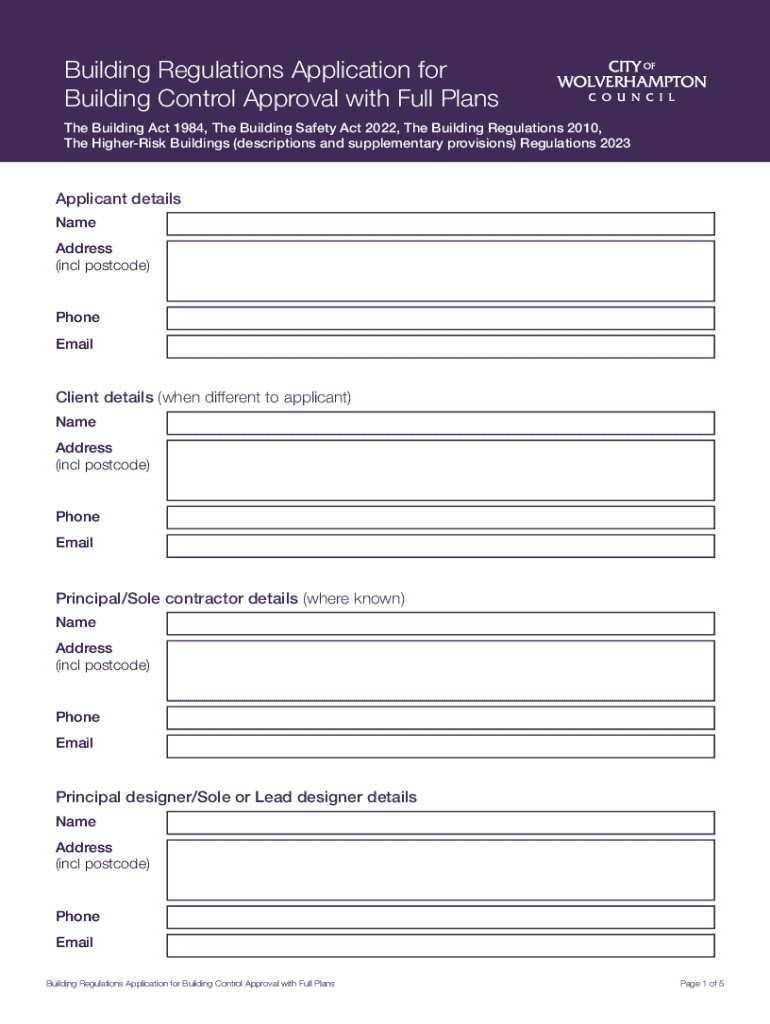 Get the free Building Control Approval with Full Plans Application. ...