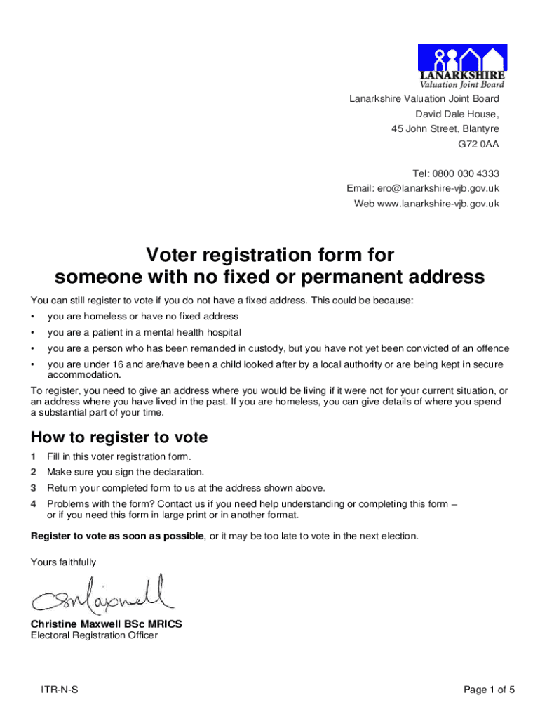 Get the free Voter registration form for someone with no fixed or ...