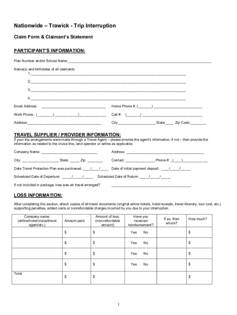 Anyone who has experienced a trip interruption due to unforeseen circumstances such as illness, natural disasters, or other emergencies may need to fill out a trip interruption claim form to request reimbursement for expenses incurred.