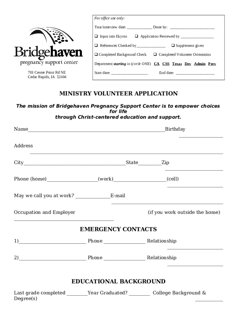 Instructions for the Bridgehaven Pregnancy Support CenterCedar Rapids, IA form