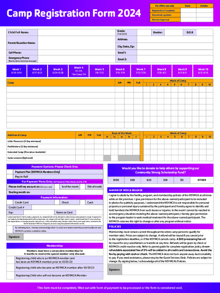 For office use encamp Registration Form 2024Initials:Household updated Director ApprovalGrade:Child Full Name:Date:Registration CompletedGender:(Fall 2024)D.O.Address:Parent/Guardian Name:City, State,