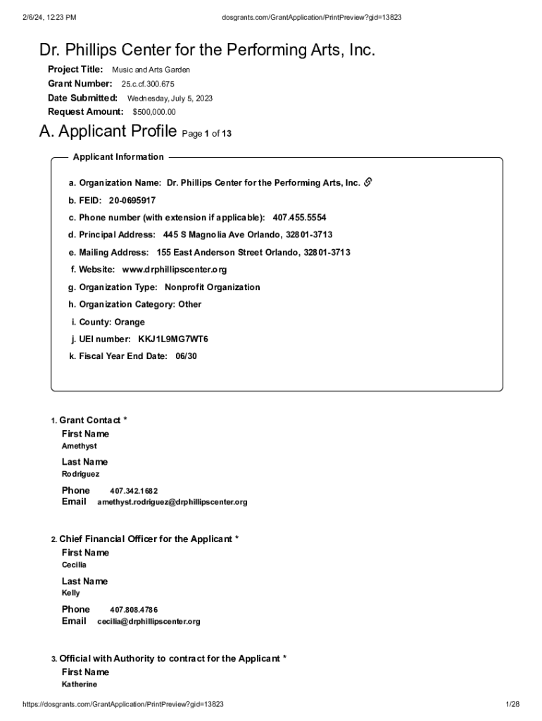 2/6/24, 12:23 PMdosgrants.com/GrantApplication/PrintPreview?gid13823Dr. Phillips Center for the Performing Arts, Inc. Project Title: Music and Arts Garden Grant Number: 25.c.cf.300.675 Date Submitted: