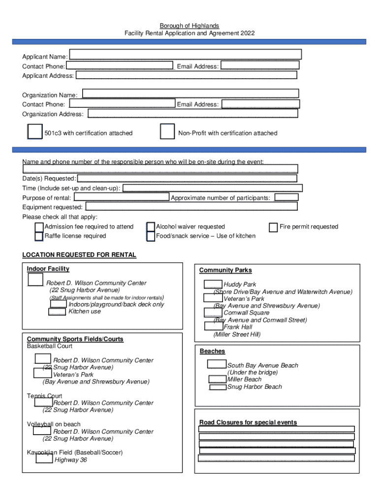 Borough of Highlands Facility Rental Agreement Informational Packet Please keep for your records PHILOSOPHY The Borough of Highlands, through the rules, regulations and ordinances adopted by the Borough
