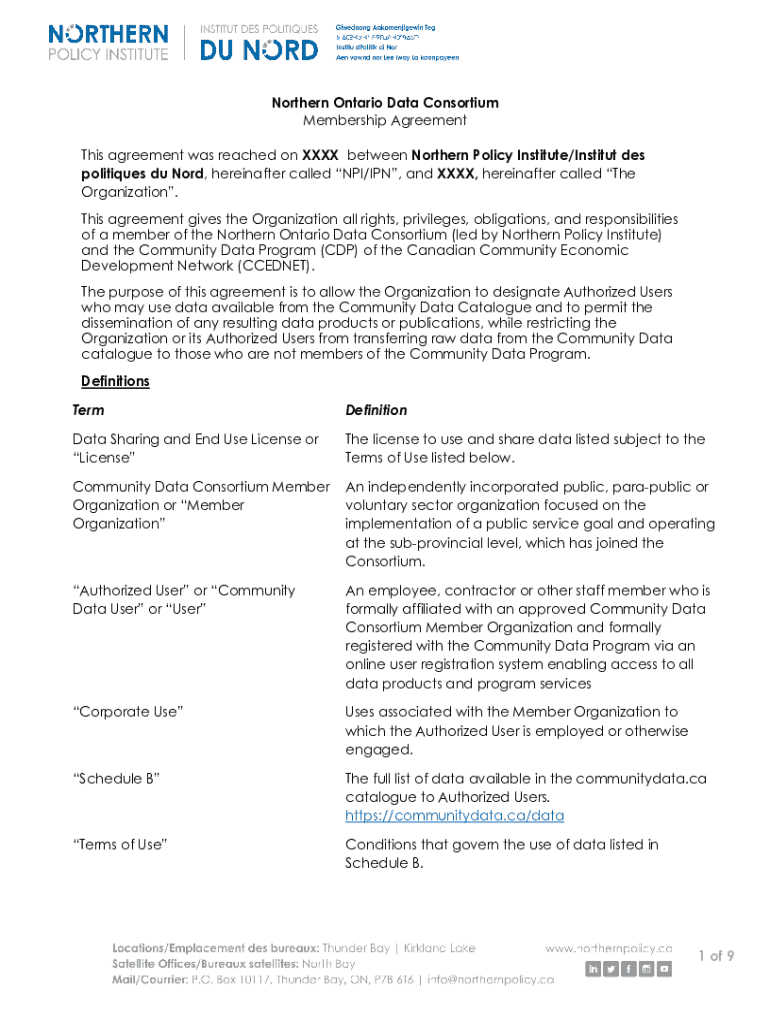 Get the free Northern Ontario Data Consortium Membership Agreement