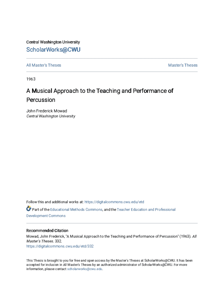 All Master\'s Theses Master\'s Theses1963A Musical Approach to the Teaching and Performance of
