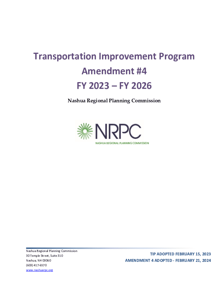 Transportation Improvement Program Amendment #4 FY 2023 FY 2026 Nashua Regional Planning CommissionNASHUA REGIONAL PLANNING COMMISSION Nashua Regional Planning Commission 30 Temple Street, Suite 310