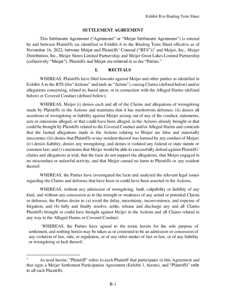 Get the free B-1 SETTLEMENT AGREEMENT This ...