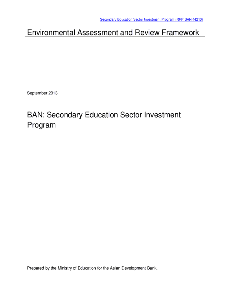 Secondary Education Sector Investment Program (RAP BAN 44213)Environmental Assessment and Review Framework September 2013BAN: Secondary Education Sector Investment