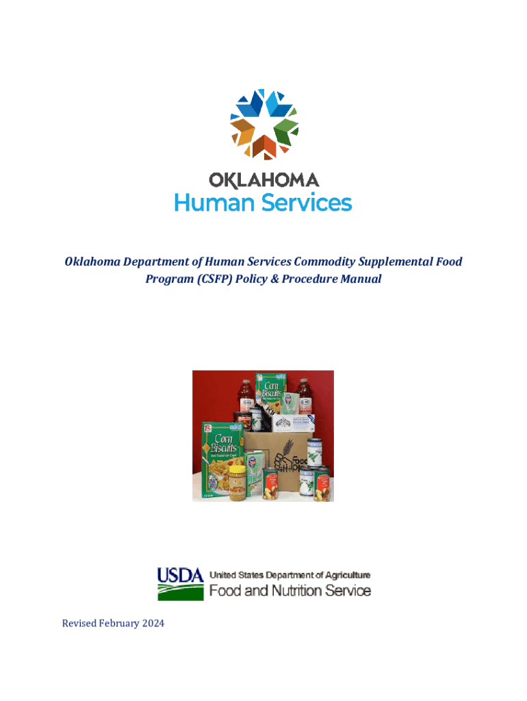 Oklahoma Department of Human Services Commodity Supplemental Food Program (CSF) Policy & Procedure ManualRevised February 2024NonDiscrimination Statement In accordance with federal civil rights law