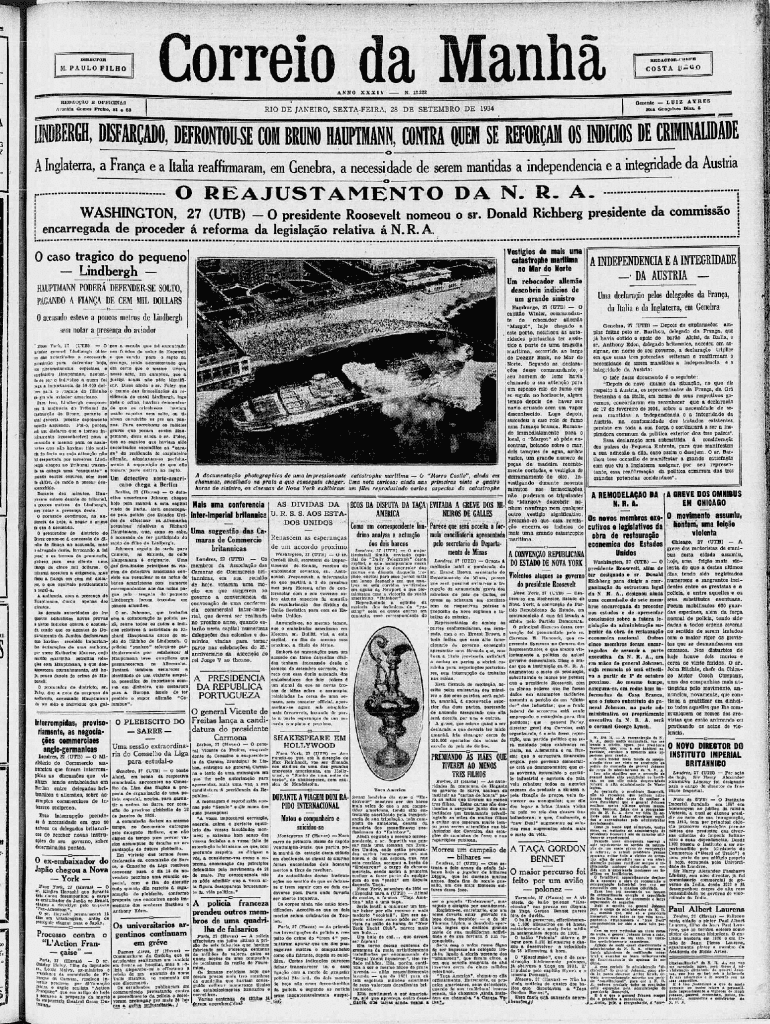 Agenda Gomes Frame, 81 e 83XXXIVN. 12.222Gerente trio DE JANEIRO, SEXTAFEIRA, 28 DE SEPTEMBER DE 1934___REDAOTORUKP×COSTA