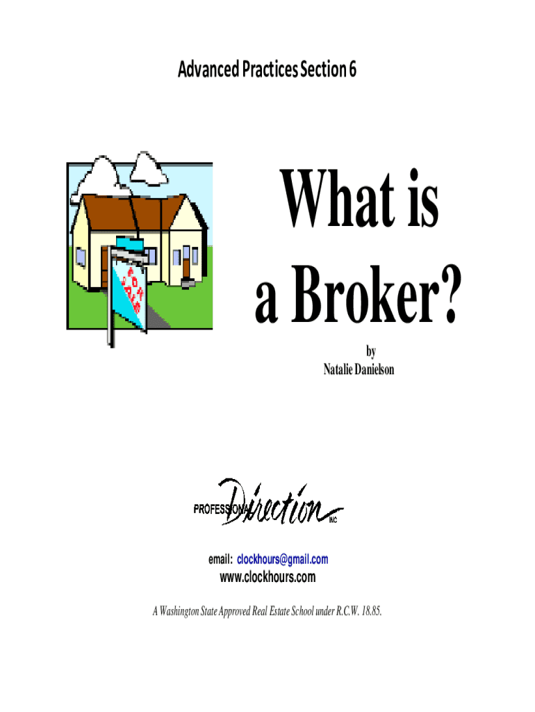 A Washington State Approved Real Estate School under R.C.W. 18.85. What is a Broker?
