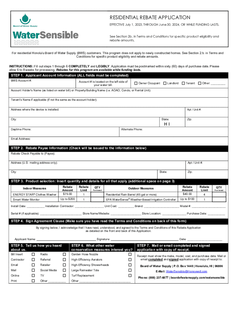 RESIDENTIAL REBATE APPLICATION EFFECTIVE July 1, 2023, THROUGH June 30, 2024, OR WHILE FUNDING LASTS. See Section 2b. in Terms and Conditions for specific product eligibility and rebate amounts.For