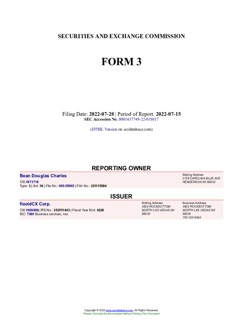 Get the free Bean Douglas Charles Form 3 Filed 2022-07-28. Accession Number